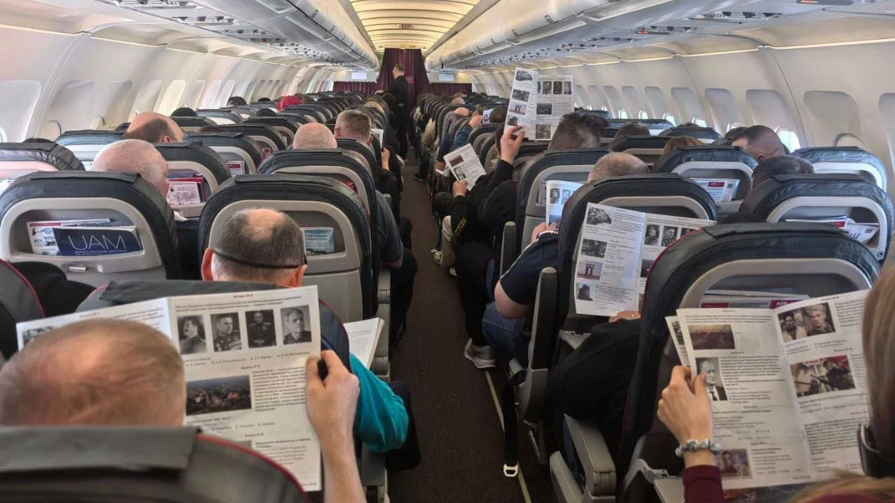 УрБК, Екатеринбург, 28.04.2026. Более двухсот пассажиров авиаперевозчика «Уральские авиалинии» и члены экипажа на рейсах U6-403 и U6-404 Екатеринбург–Калининград–Екатеринбург написали во время полета«Диктант Победы».